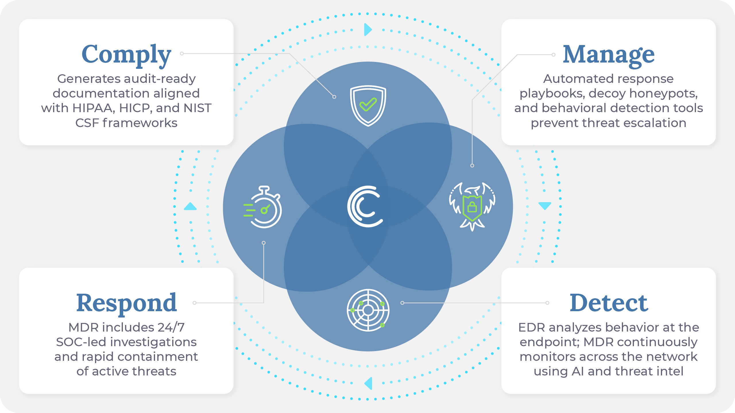 Whether you need EDR, MDR, or both, CloudWave delivers flexible, expert-led protection—designed for healthcare.